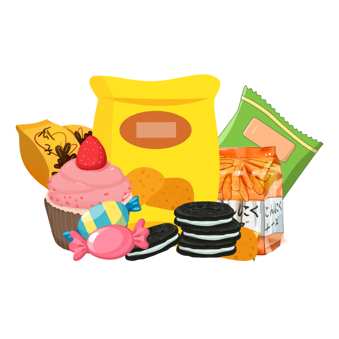 需要限制食用的零食通常所含营养素很少,却含有较多的油、糖和盐,如糖果、炸鸡块、膨化食品、薯片、碳酸饮料、雪糕、方便面、奶油蛋糕等。这类食物能量较高,经常食用会增加肥胖及其他慢病的风险,故而需要更为严格地控制摄入量和摄入频率。建议每周不超过1次;如果是超重及肥胖者,每月不超过2次甚至不吃。