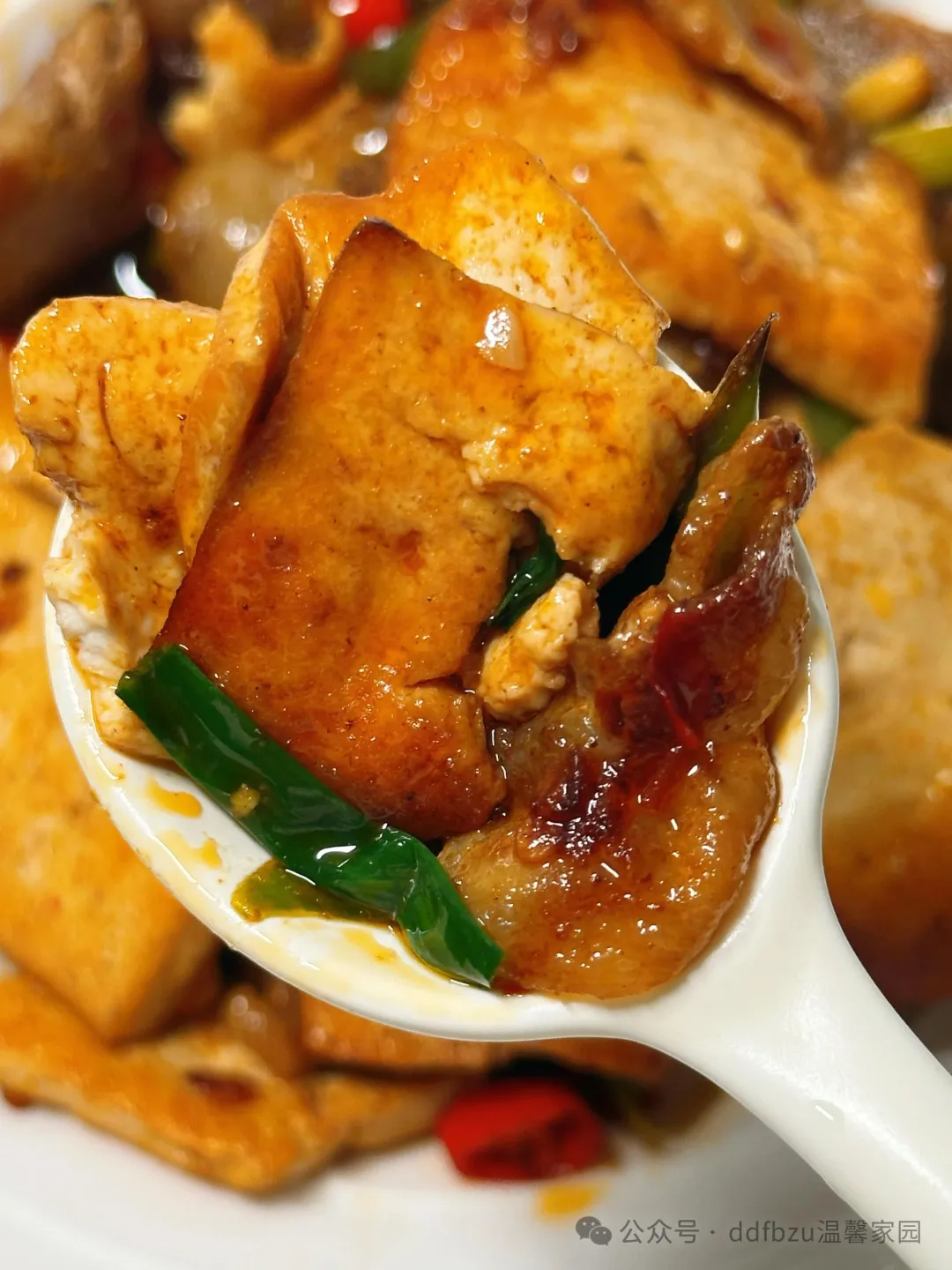 其实有个特别简单的小妙招:炒的时候加几块豆腐进去。豆腐吸油又解腻,还能把肉香和酱汁全吸进去,吃起来香而不腻,越嚼越香。