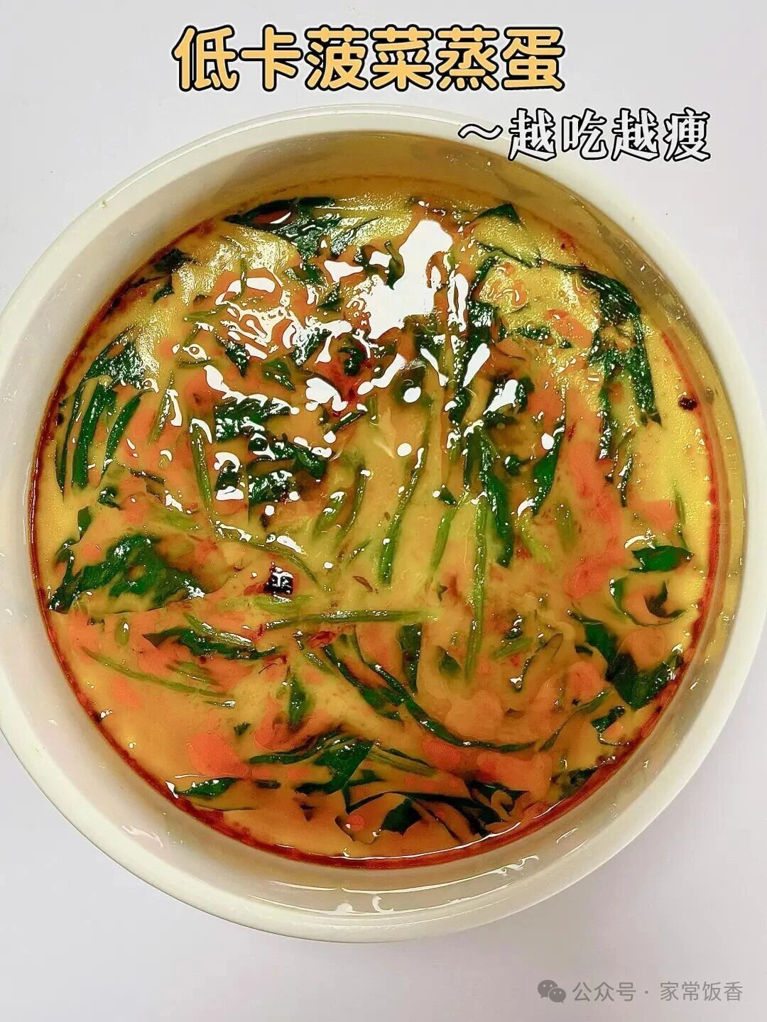 蒸蛋嫩嫩的像布丁,加上菠菜之后补铁又补叶酸,翠绿的颜色非常好看。老人吃容易消化的,小孩子吃补充营养的,一碗搞定。