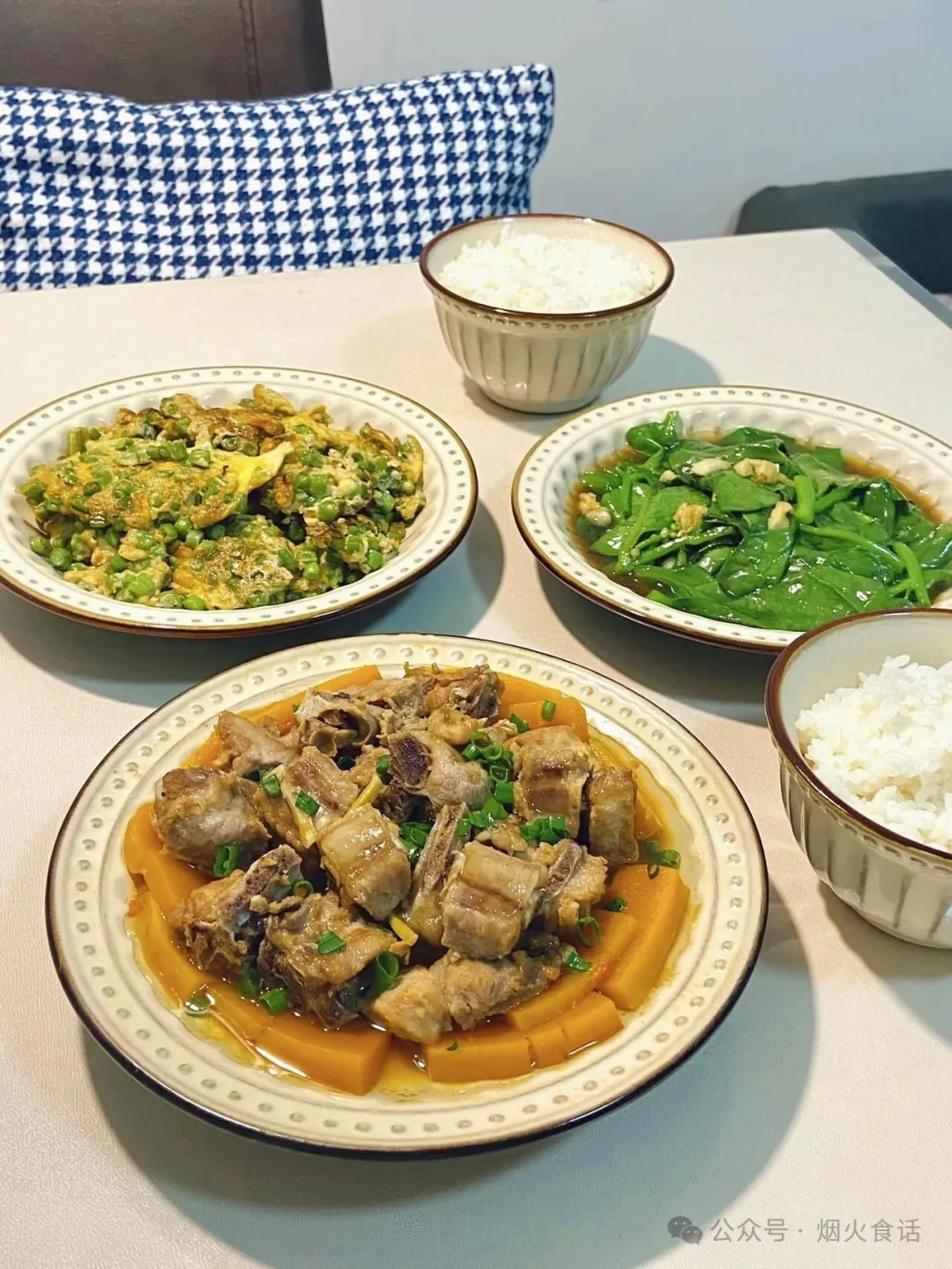 2️⃣深盘底部铺南瓜块(留少许间隙),腌好的排骨均匀摆在南瓜上,避免重叠。