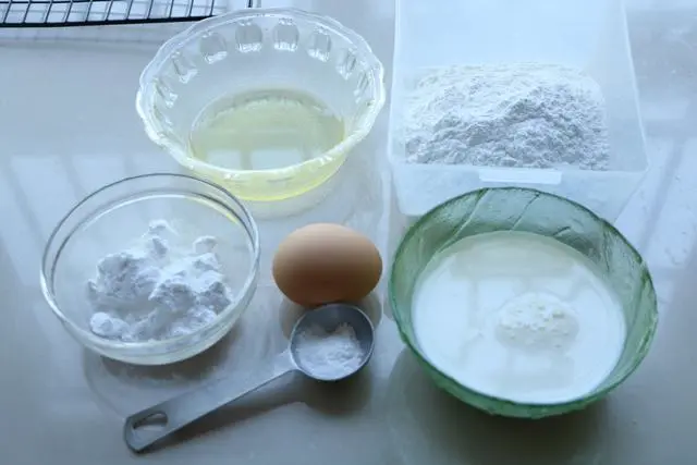 制作配料:糯米粉160克 鸡蛋1个 玉米油30克 牛奶145克 糖粉30克 泡打粉2克(可不加)