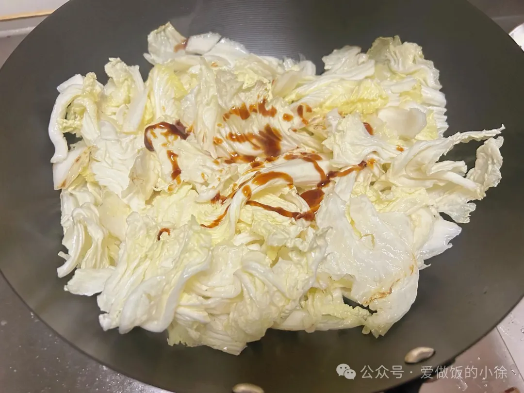 2️⃣锅中留少量油,放入清洗好的白,翻炒几下加蚝油继续翻炒至断生。