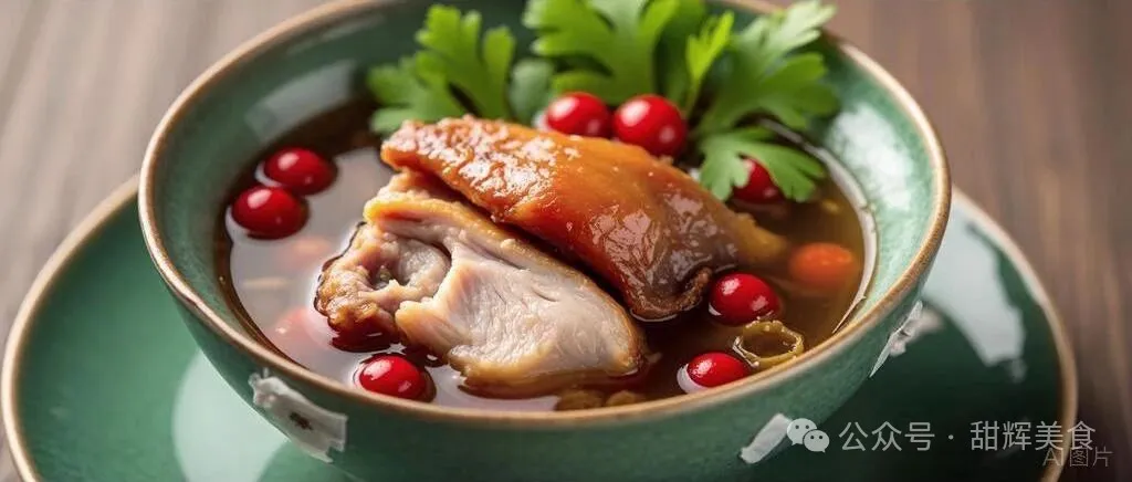 做法:先把药材用清水浸泡一会儿,让它们 “喝饱水”,药效更好释放,然后装进干净的纱布包。鸭肉洗净切成小块,冷水下锅焯水,撇去浮沫,捞出洗净。接着,把鸭肉、姜片一起放进炖罐里,加入适量清水,大火烧开后转小火蒸 60 分钟,再把药包放进去,继续蒸 30 - 60 分钟,直到鸭肉软烂。