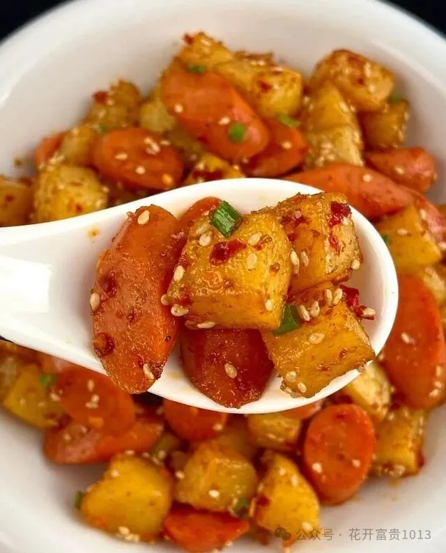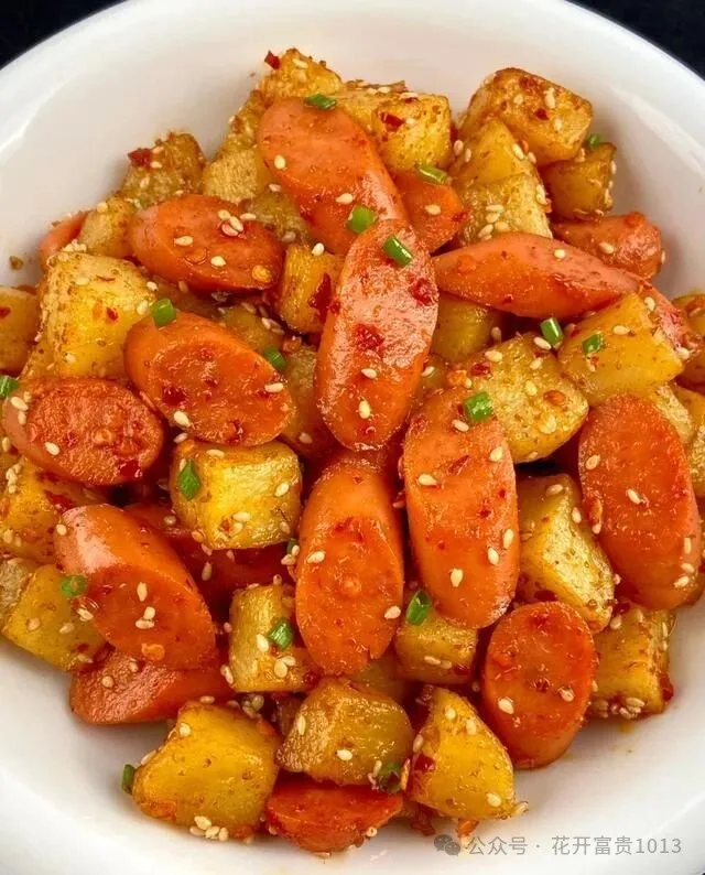 前两天刷到个视频 , 孜然火腿土豆丁 , 评论区炸了锅 , 都说香得不行 , 比烧烤摊还香!
