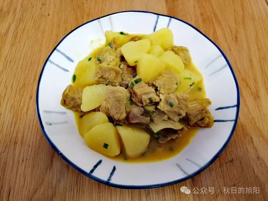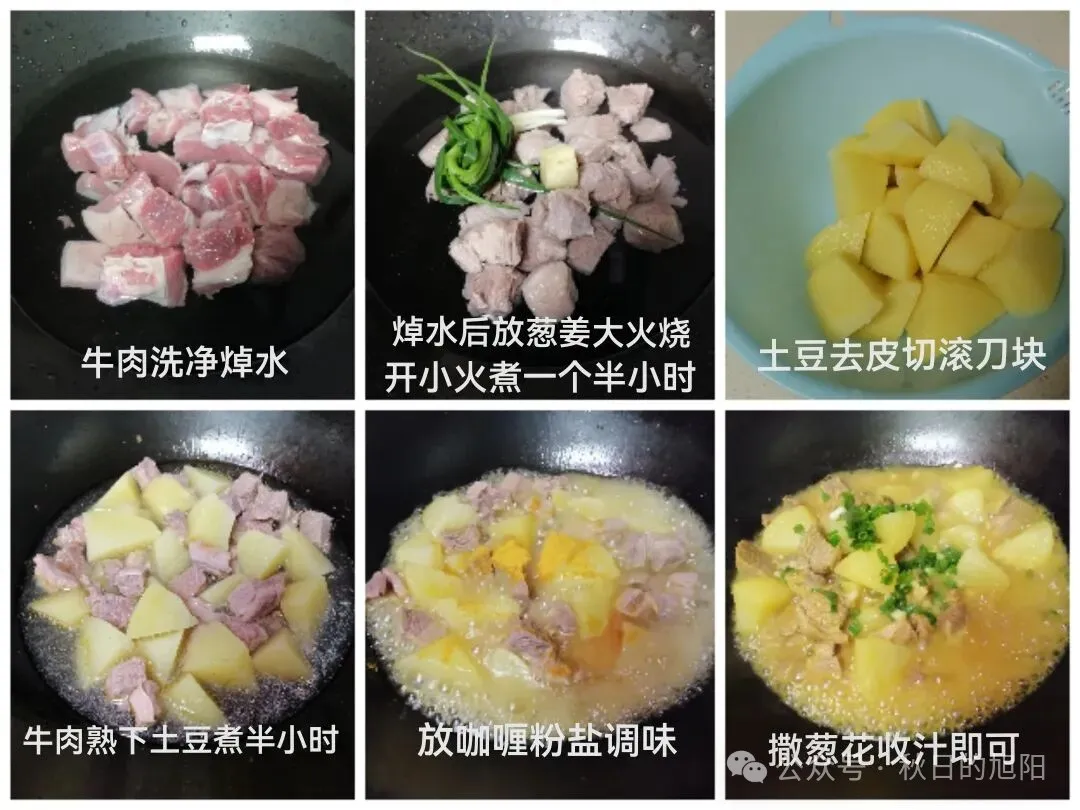 咖喱土豆牛肉+韭黄炒鸡蛋+蒜蓉刀豆+麻辣凉皮