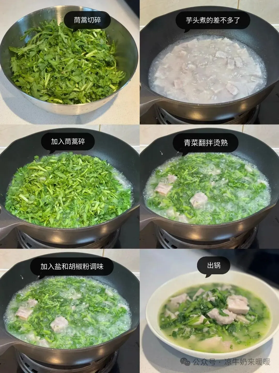 这季节的芋头最是软糯,茼蒿正是鲜嫩的时候,这两样加起来成本才5块钱,味道却一点不输大鱼大肉。
