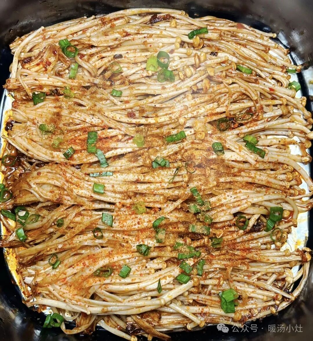 金针菇洗净去根,用烧烤料、生抽、蚝油、油拌匀。180℃烤10分钟,撒葱花。香辣入味,比烧烤摊还好吃!
