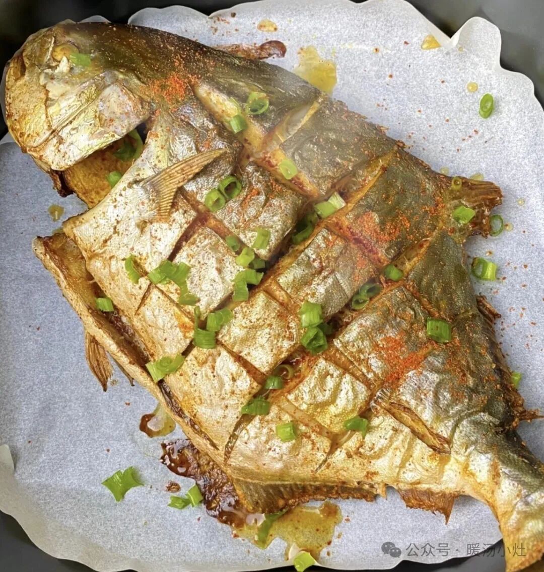 鲳鱼处理干净,用盐、料酒、姜片、葱段腌制15分钟。表面刷油,180℃烤15-20分钟。鱼肉鲜嫩刺少,原汁原味,老人孩子都爱吃。