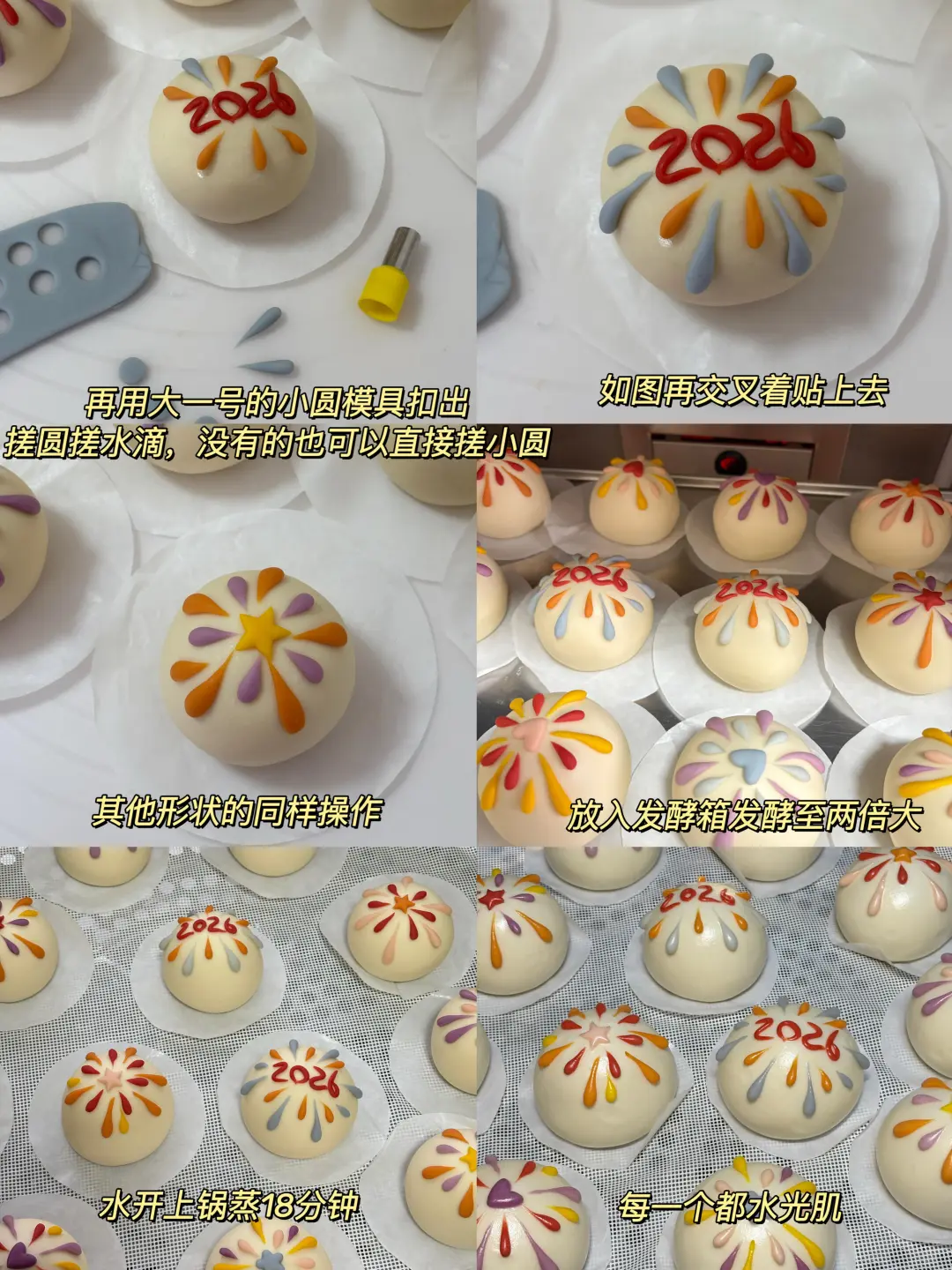 这款烟花馒头不仅仅是美食,更承载着深厚的文化寓意。烟花象征着热闹喜庆、辞旧迎新;黑芝麻馅寓意"芝麻开花节节高";而"2026"的数字标识则直接表达了对新一年的美好祝愿。