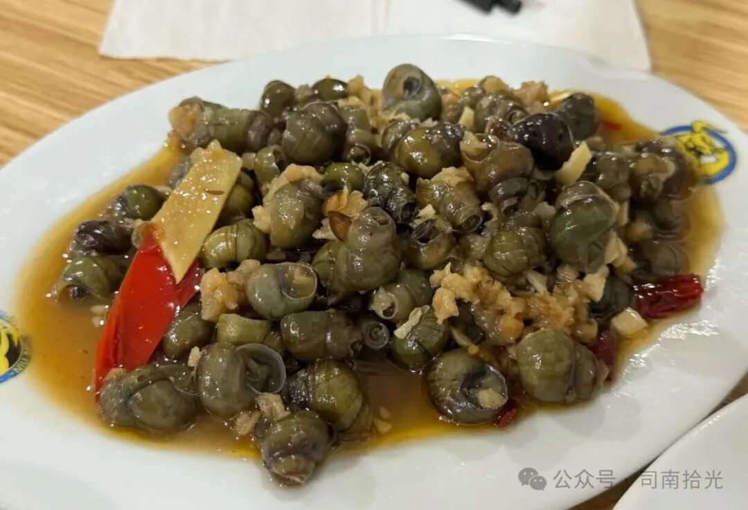 田螺端上来,菜谱碎碎的混在里头,香气直往鼻子里钻。用牙签挑出肉,送进嘴里,脆脆的,在齿间断开,那种菜谱特有的香刚好把腥味盖住,只剩下鲜。