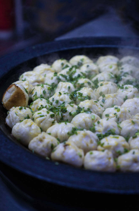 同心楼的生煎包1.2元一只,不是灌汤的,不用担心汤汁乱溅。猪肉馅料一定要用新鲜的前腿肉,刚出锅的生煎最好吃,虽然有点烫嘴,但等不得,得趁热吃。吹一口咬一口,边吃边发出“呲呲哈哈”的吹气声,才是生煎包最好吃的时刻。小笼包也同样好吃,无论是生煎还是小笼,都不像上海或是苏南地区那样带着甜口,保持着绍兴的咸鲜口味。