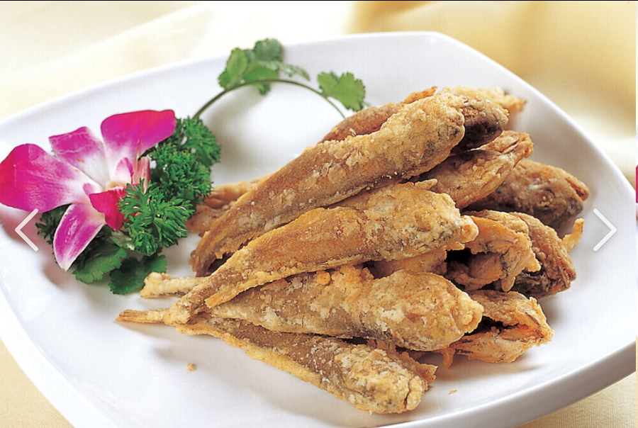 干炸小黄鱼,小黄鱼是威海的著名特产,腌制后裹上薄薄一层面粉炸制,外皮焦香酥脆,内里鱼肉雪白鲜嫩,味道鲜美。干炸小黄鱼在威海市随处可见,是环翠区最受欢迎的小吃之一,也是本地人佐餐下酒必备,越嚼越香,被誉为“威海街头的海味心跳”