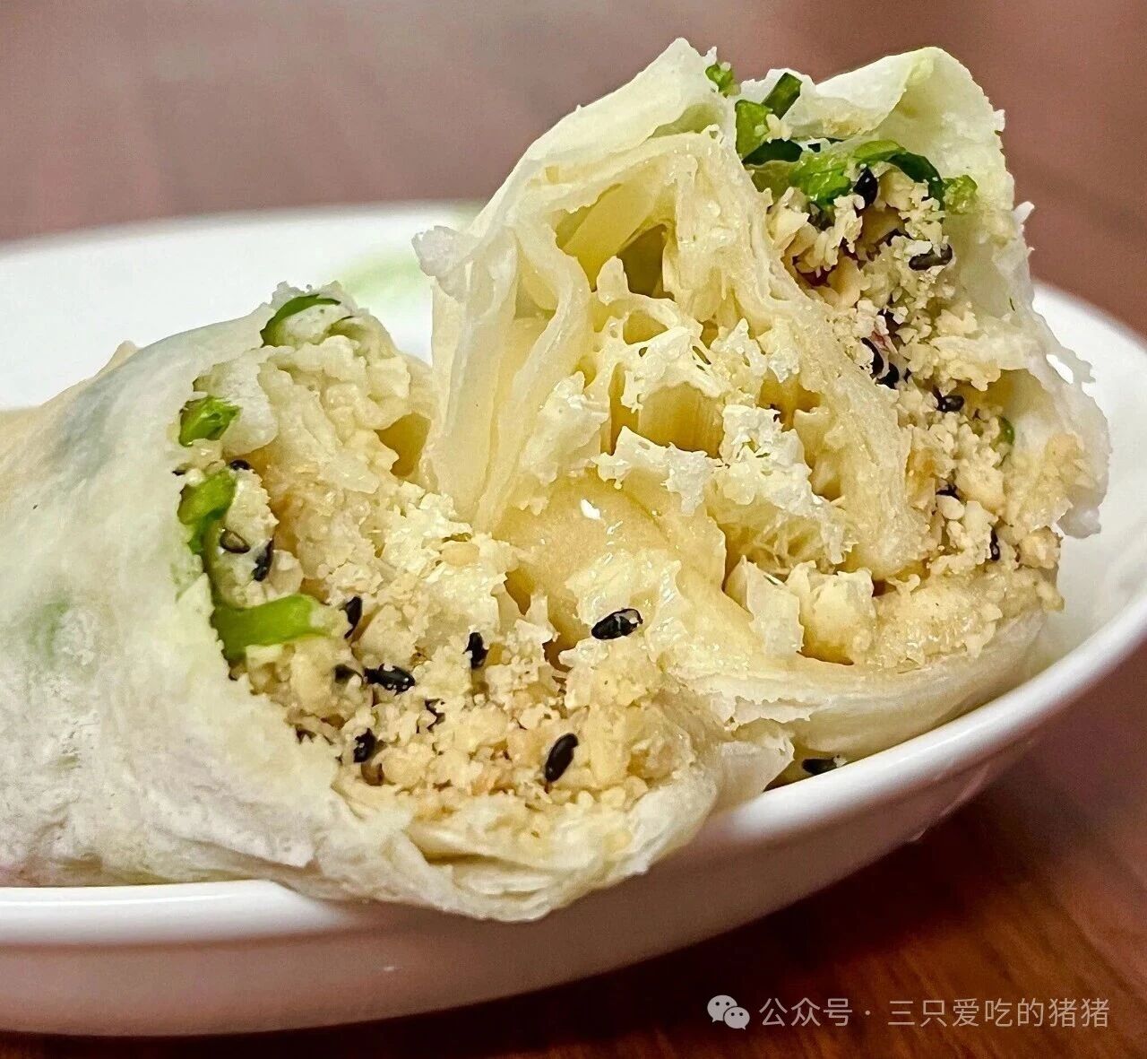童年回忆杀小吃,甜党必冲!现烙的薄饼柔韧有嚼劲,裹上酥脆的糖葱、芝麻花生碎,还能加点香菜提味,咸甜交织,甜而不腻。糖葱入口即化,薄饼软糯,一口咬下去咔嚓作响,满满的古早甜味,是揭东人从小吃到大的街头美味。