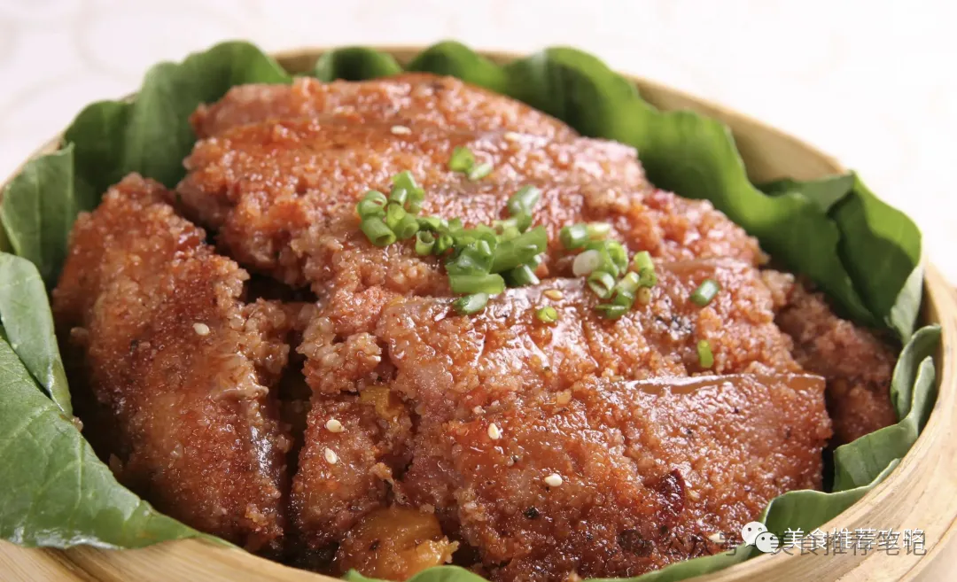 荷叶粉蒸肉是嘉兴的一道特色传统名菜;在清末,相传其名与“西湖十景”的“曲院风荷”有关。它是用当时杭州的鲜荷叶,将炒熟的米粉和经调味的猪肉裹包起来蒸制而成,其味清香,鲜肥软糯而不腻,夏天食用很适合胃口。