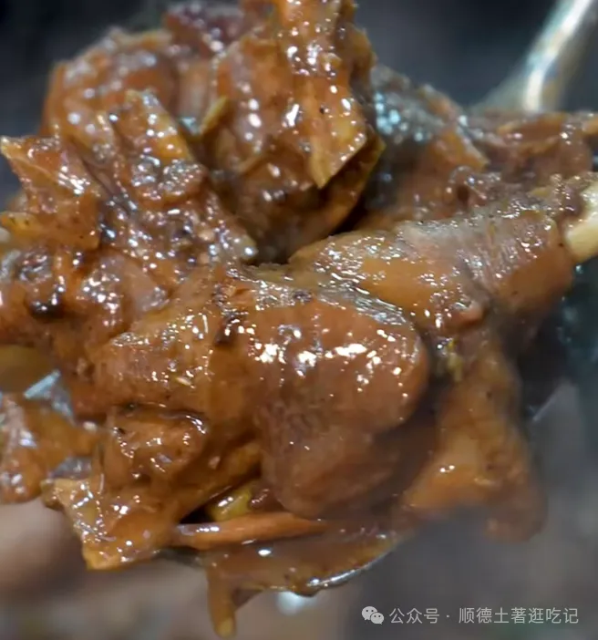 成品鹅肉鲜嫩多汁,酱香浓郁,尤其适合拌饭食用:趁热用汤汁拌米饭,浓稠的酱汁裹着米粒,连最后-滴都不想浪费。这道菜没有花哨技法,却凭着扎实的味道,成为聚餐时暖身又暖心的选择