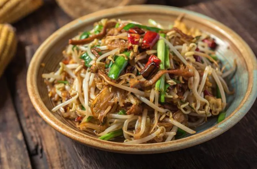 瓷碗中,红薯粉丝的银白、黄花的金黄、笋尖的浅棕交织,鸡汤的鲜与猪油的香裹着每一根粉丝。夹一筷入口,粉丝软糯吸饱了汤汁,干菜的韧与时令蔬菜的脆形成奇妙对比,咸鲜的滋味里藏着淡淡的胡椒香。这道作为宴席第三道菜的吉祥菜,原是娄底人对生活的美好期许—— 用食材的交融,将 "和睦团圆" 的心意藏进家常滋味里。