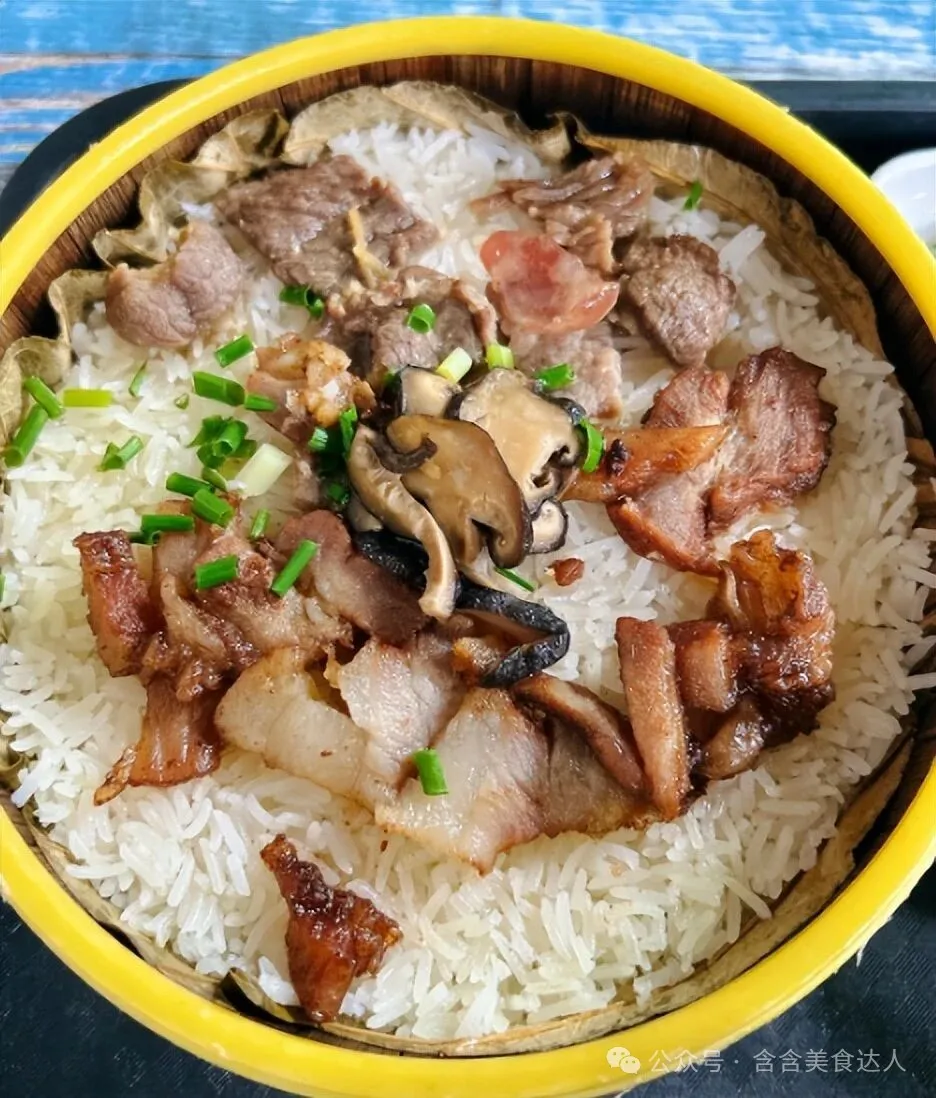 贵港荷叶饭以新鲜荷叶包裹糯米和肉馅蒸制而成,饭粒软润爽鲜,带有荷叶的清香,口感清淡不腻,是贵港“荷城”特色的代表性美食,广受当地人喜爱。其清香软糯的风味在傍晚或宵夜时段尤为受欢迎。