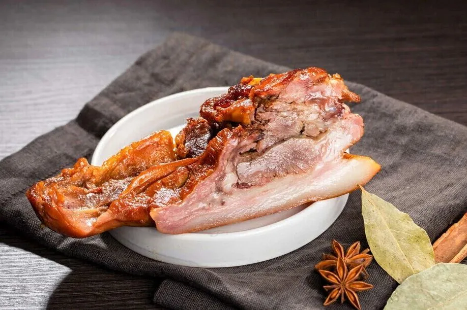 诸城烧肉妙在“先煮后熏”的核心工艺,具体就是“久煮以去其腥,软其骨,化其腻;后熏以覆其味,增其香,固其色,还能保鲜防腐”。