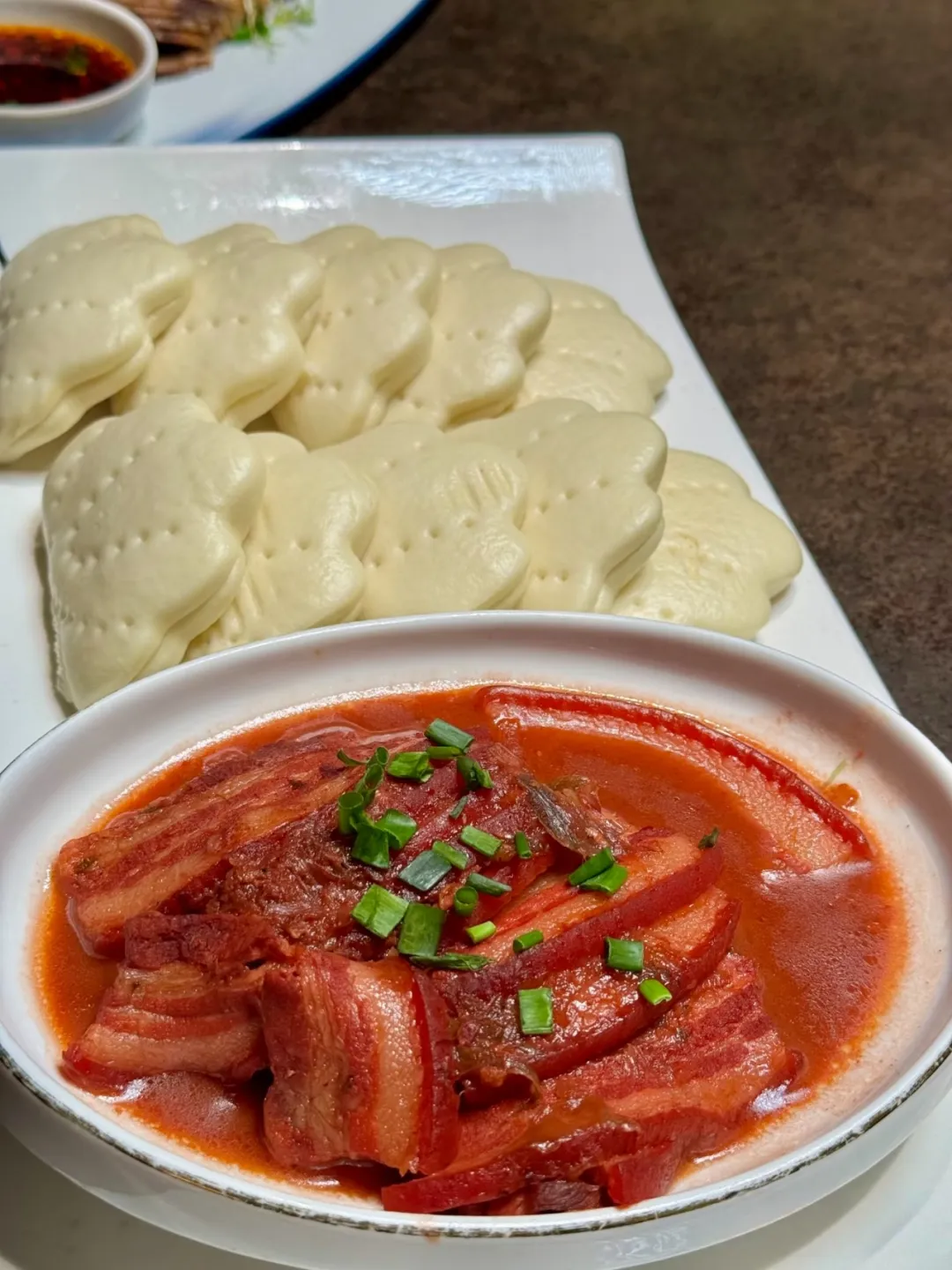 兰州糟肉是西北年夜饭的灵魂菜品,五花肉经腌制蒸制后色泽红亮,肥而不腻、入口即化,浓郁的腐乳香气弥漫满屋,配着花卷同食更是香润可口,尽显金城独有的年节风味。