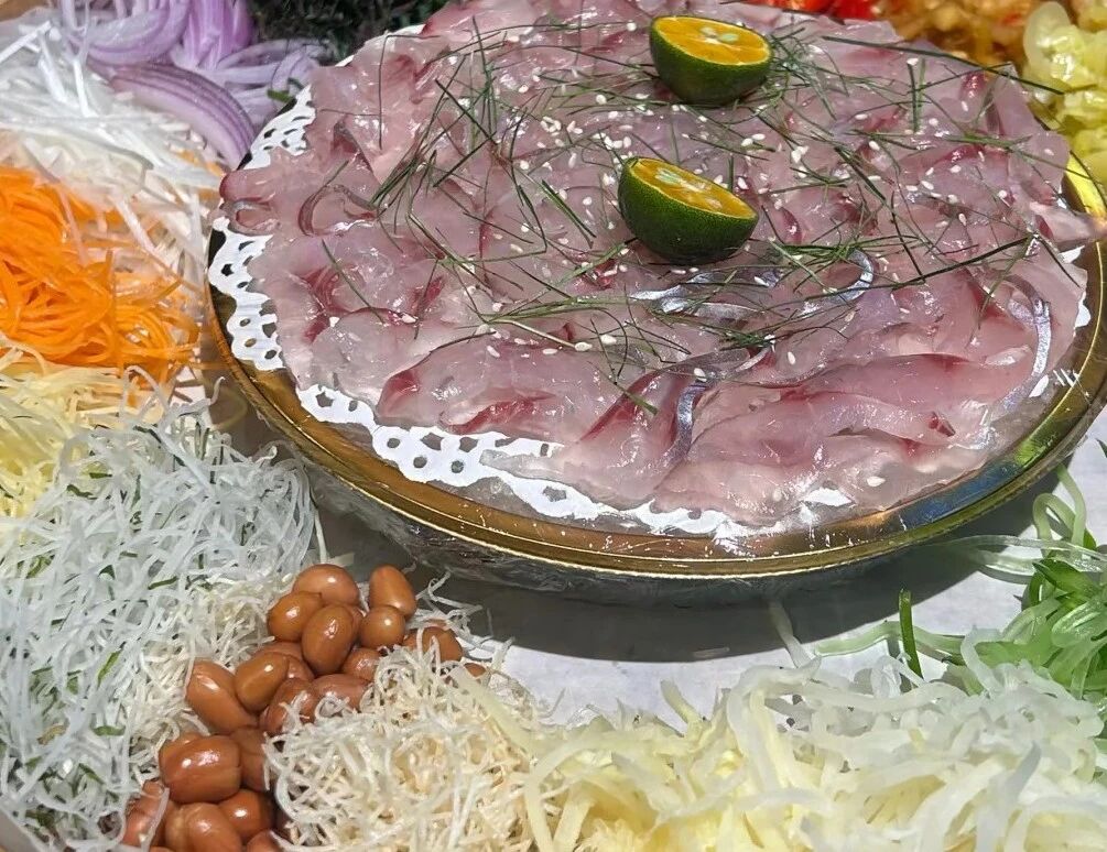 “鱼”的百变传奇:在佛山,一条鲮鱼能被演绎出七十二般变化,堪称“舌尖上的功夫”。其巅峰之作,莫过于顺德鱼生。这绝非简单的生吃鱼肉,而是一场从选鱼、放血、切片到调味的精密仪式。必须选用水质清澈池塘养大的鲮鱼,经过“饿养”清空泥沙,宰杀时精准切断动脉在水中放净血,鱼肉方晶莹剔透、不染淤红。老师傅以薄如蝉翼的刀工片出鱼生,佐以蒜片、姜丝、洋葱、柠檬叶、炸花生等十余种配料,淋上土榨花生油和盐拌匀。入口鲜、甜、爽、嫩,各种香料的风味次第绽放,是视觉与味觉的双重盛宴。而鱼骨不会浪费,用来椒盐或煲粥,鱼皮则凉拌,体现物尽其用的智慧。