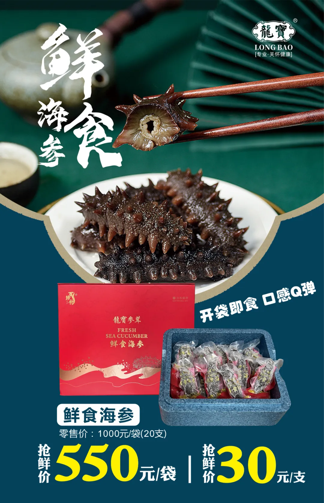 鲜食海参:以低温70℃营养锁鲜,全程仅水发一次,营养价值更高,解冻后开袋即食,口感更Q弹劲道;