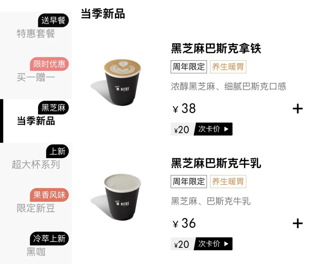 30款拿铁:综合来看,拿铁的搭配更灵活,各家都有小亮点。比如蜜雪冰城上架了黑糖拿铁,肯悦咖啡用到生巧风味乳品,M Stand推出黑芝麻拿铁等。