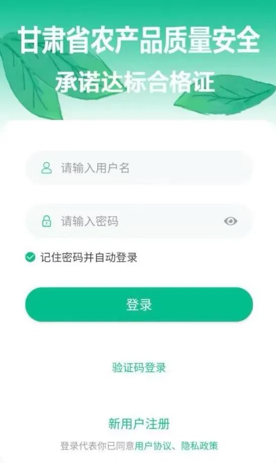 已在甘肃省农产品质量安全监管追溯平台注册备案的生产主体,可使用平台账号密码登录APP.