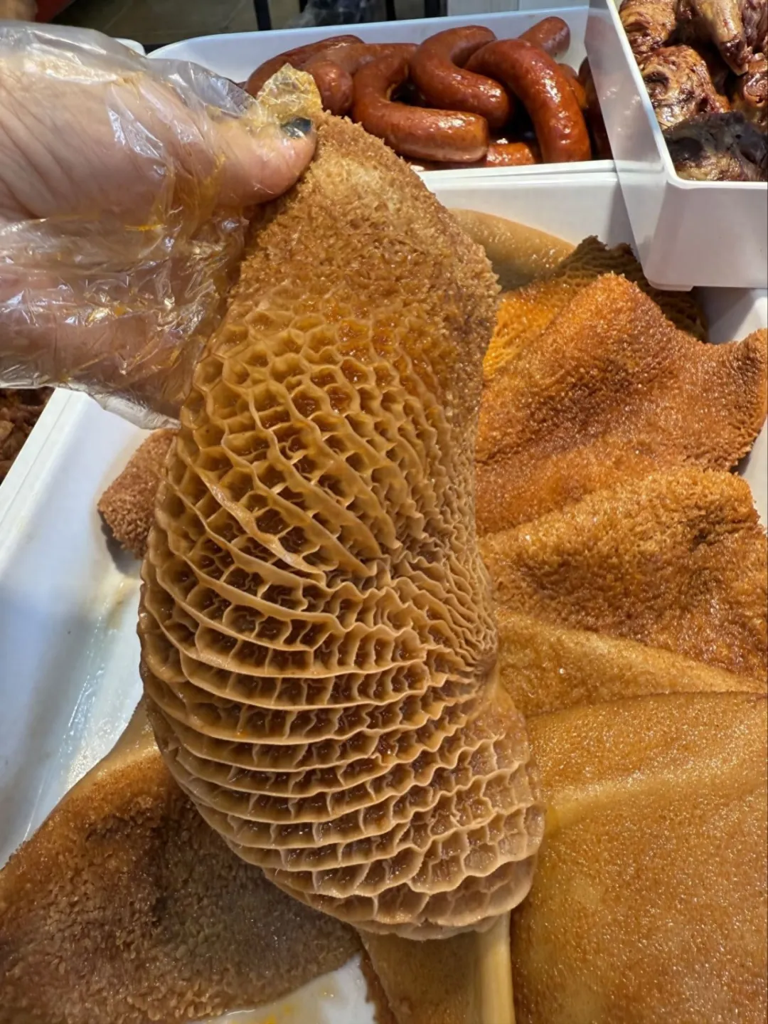 捞出牛肚,刷上一层薄薄的 香油或卤油(卤水表面的油)防止风干变黑,整块或切件后按重量售卖,顾客买回家自行加工。 - 成本控制与增值:
