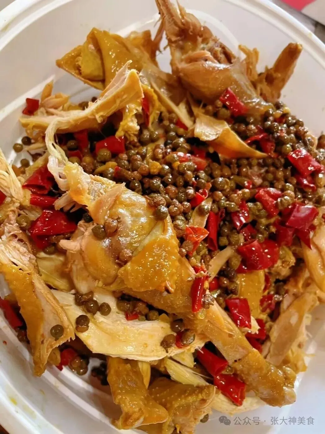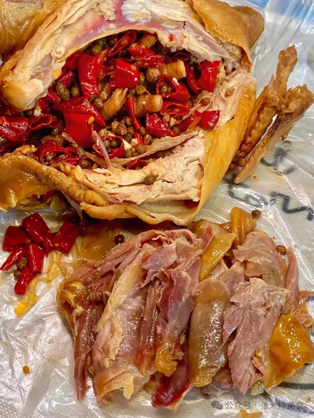 •标配:泡鸡用的青红花椒、辣椒段(就是大家看到的,铺满鸡肉表面的料),直接用浸泡鸡肉的油料里的料就行,不用额外准备,省成本,还不浪费。