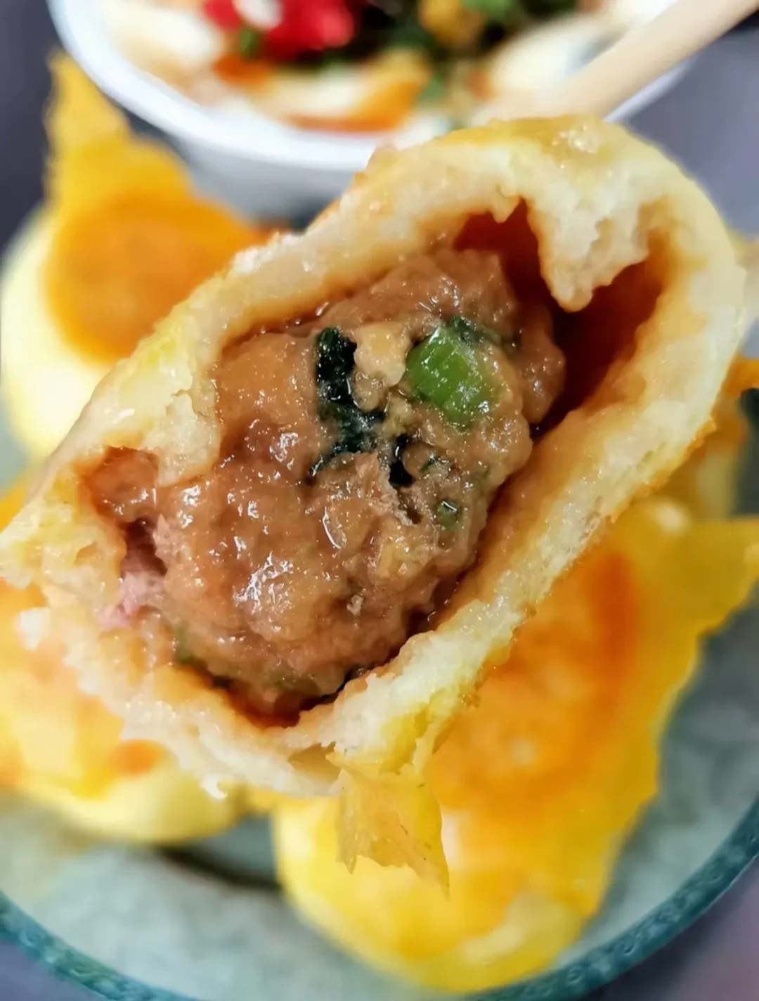 1.将切好的葱花撒上盐、包子料、