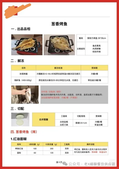 3)制作流程标准: 标准菜品卡配以成品照片,同时需要制定标准制作流程。