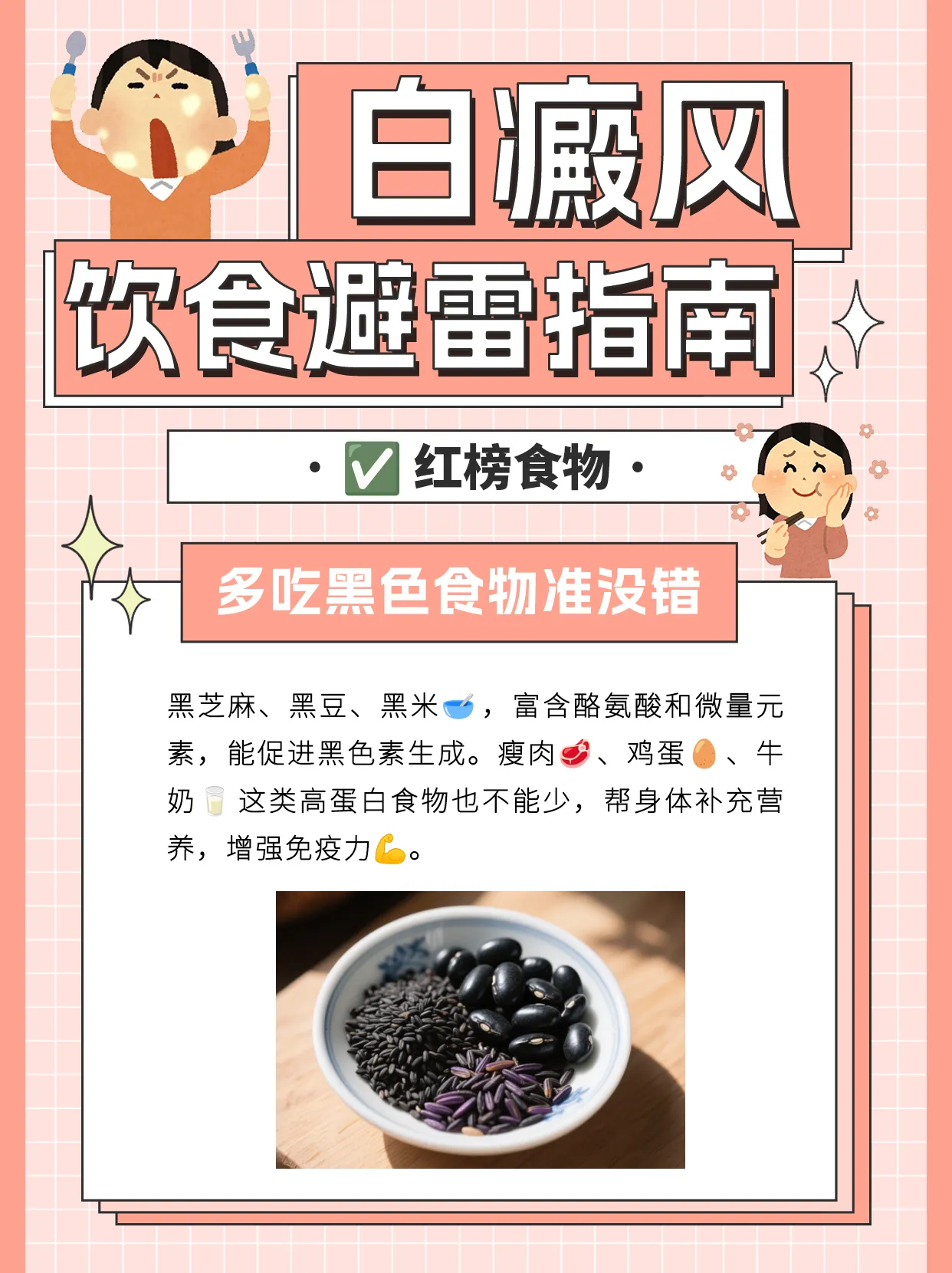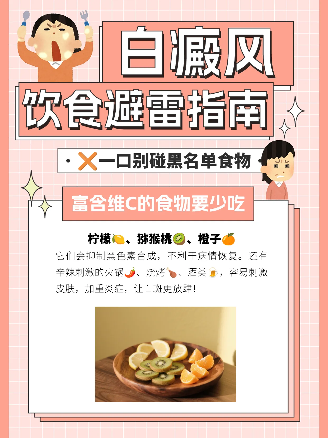 它们会抑制黑色素合成,不利于病情恢复。还有辛辣刺激的火锅、烧烤、酒类,容易刺激皮肤,加重炎症,让白斑更放肆!