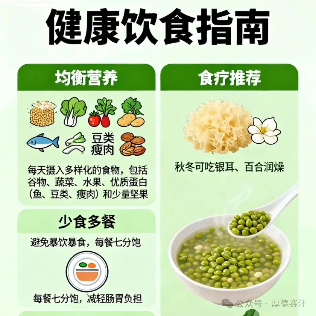金秋送爽,即将迎来国庆与中秋相连的8天超长假期。无论是家庭团聚、走亲访友,还是外出旅行,美食总是节日的主角。然而,大快朵颐之后,体重悄悄上涨、血糖血压波动、肠胃提出“抗议”等情况可能纷纷“找上门”。 健康人群:享受美食,贵在“平衡”与“适度” 对于身体健康的人群来...