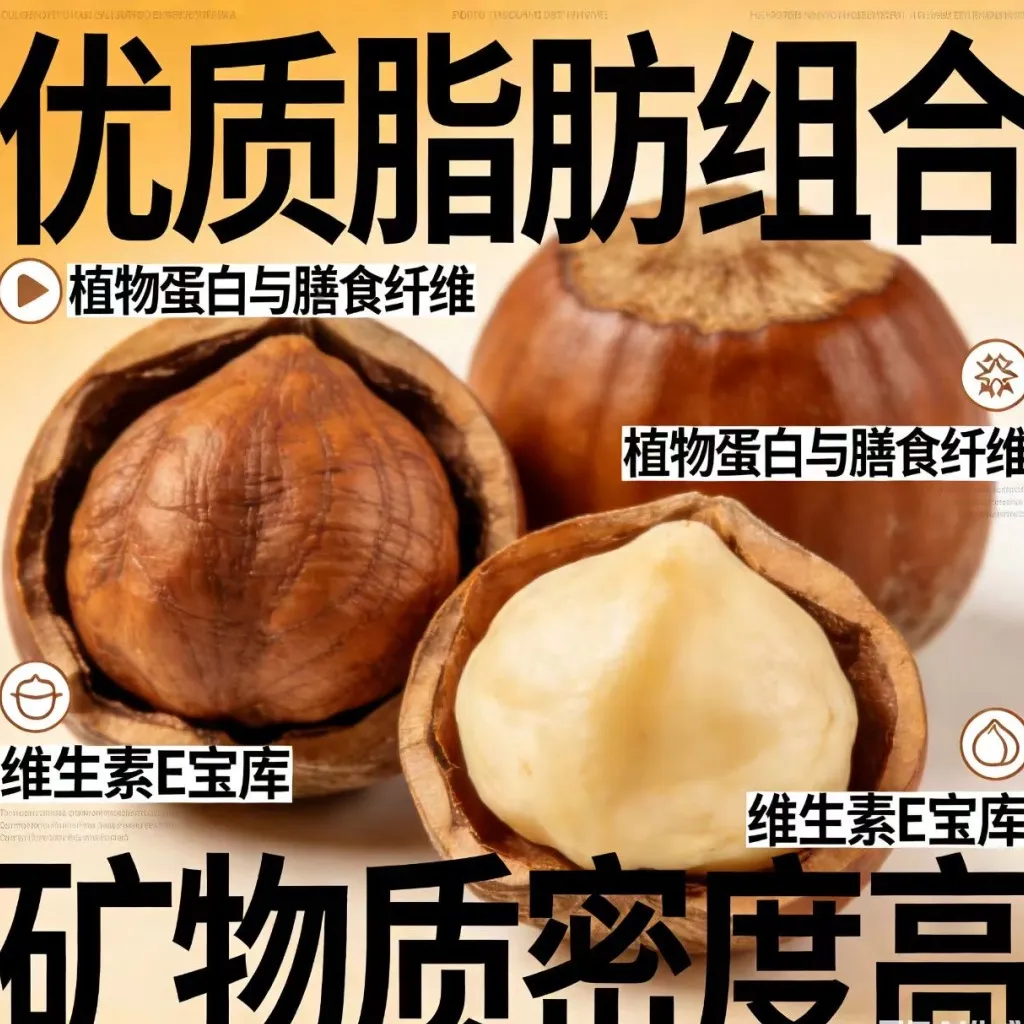 榛子是世界四大坚果之一,是桦木科榛属植物的成熟果实。外壳坚硬呈褐色,果仁饱满乳白,带有独特的木质香气。在我国东北、华北山区多有野生,如今已实现规模化种植,是冬日滋补坚果的重要选择。