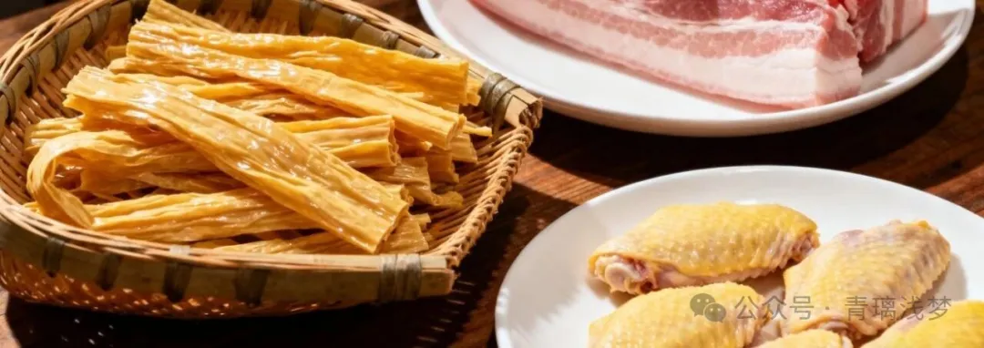 1. 干腐竹:选颜色淡黄、有光泽的,别买惨白或发黑的(可能漂白或变质)。用手掰一下,脆而不碎的是好腐竹,要是一掰就成粉末,说明太干或存放太久。泡发后腐竹应该饱满有弹性,没硬芯、没异味。