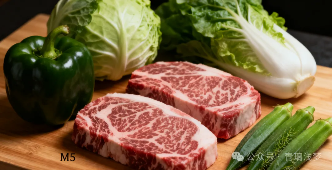 和牛选M5-M7级的牛里脊或牛肩肉,雪花纹理均匀分布,颜色鲜红,脂肪呈乳白色,这样煎出来嫩而不腻。青椒选深绿色、表皮光滑有光泽、捏起来有弹性的,蒂部新鲜,没虫眼没软烂的。白菜选包心紧实、叶片翠绿、根部白净的,外层叶子没黄斑的最新鲜。秋葵选嫩果,长度10厘米左右,颜色翠绿,表皮绒毛整齐,捏起来不硬不软,太硬的老了,太软的可能变质。