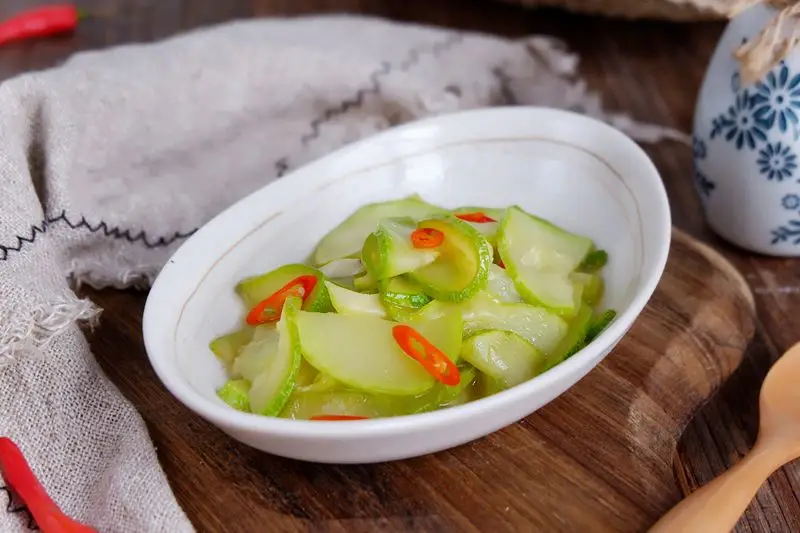 6. 清炒葫芦瓜片制作完成,一道低盐低脂的清胃菜。