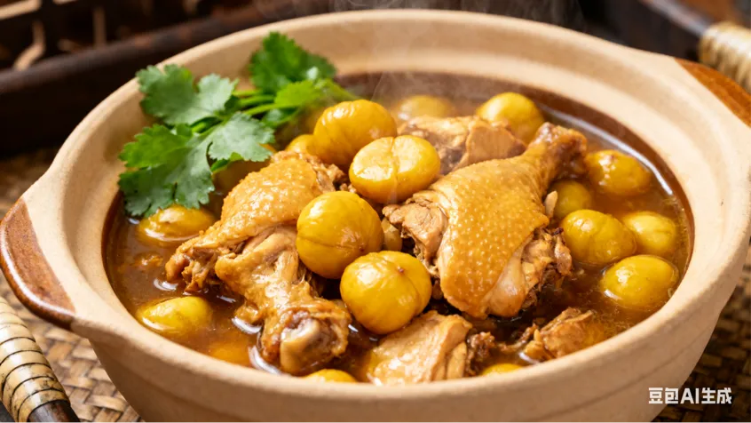 食用建议:除作零食外,更宜入膳。“板栗烧鸡”皆为温性滋补之品,相辅相成,是霜降时节经典的温补膳食。煮粥时加入几粒,亦能增其甘香与补益之效。