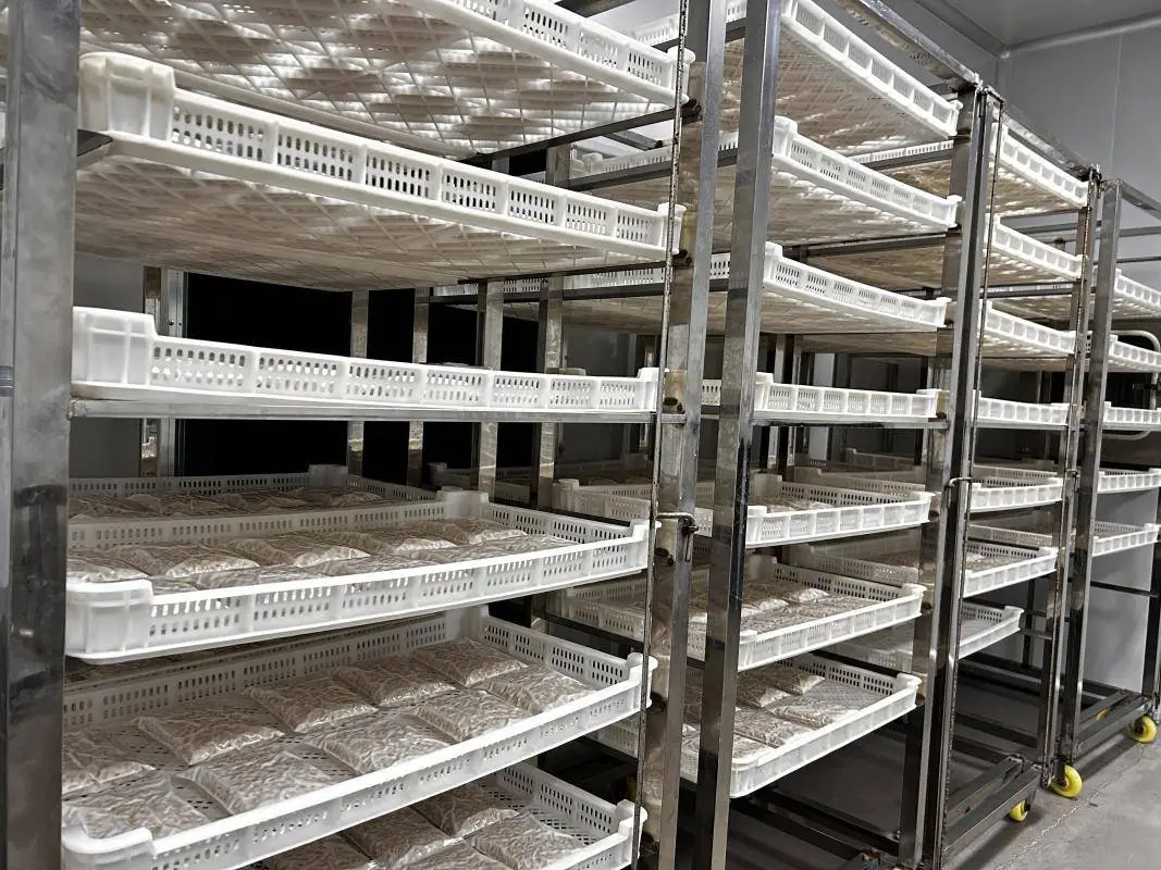 发酵,是天贝制作的核心环节,也是大豆“脱胎换骨”的关键。整个过程如同一场精密的微生物交响乐,每一步都需要严格把控温度、湿度与时间,让特定霉菌成为绝对的“主角”。在毛毛豆瓣现代化天贝加工生产线,筛选干净的大豆加入足量清水浸泡12-24小时,直至大豆充分吸水膨胀后,进行脱皮,清洗,进入蒸汽夹层锅,通过精准控制温度与压力,确保大豆熟透的同时,最大程度保留营养成分。随后进入天贝制作的“灵魂”——接种天贝菌也就是一种毛霉菌,毛毛豆瓣天贝采用标准化自培养的菌种,能有效避免杂菌污染,保证天贝品质的稳定性。最后进入恒温恒湿的发酵车间,经过两天的发酵,毛霉会迅速生长繁殖,其菌丝会将分散的豆瓣紧密缠绕在一起,形成质地紧实的块状结构,同时表面会逐渐覆盖一层白色的菌丝体,一块高品质的天贝便制作成功。