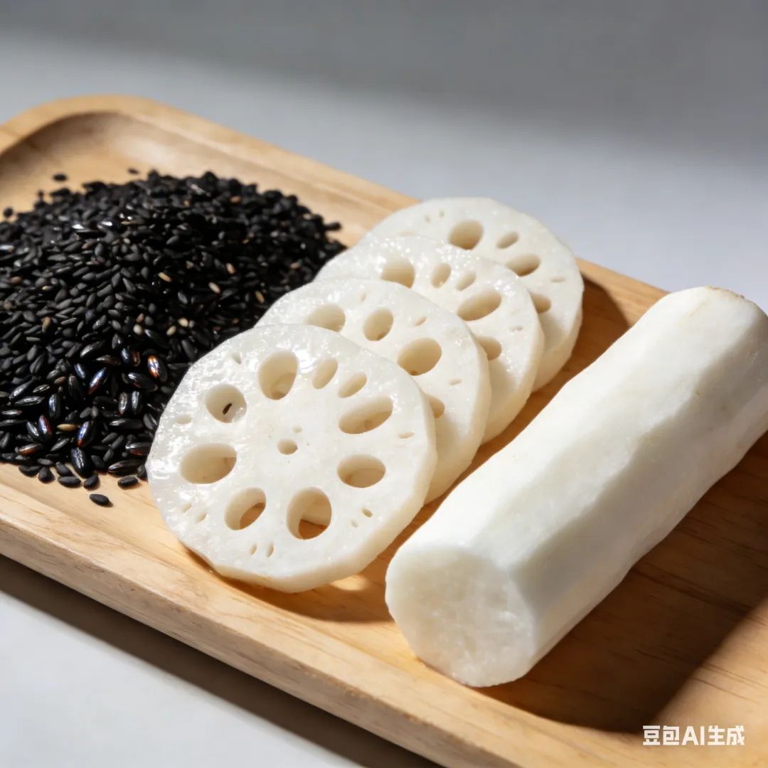 莲藕:味甘性凉,有润燥健脾、滋阴润肺功效,含丰富膳食纤维和维生素C,能改善冬季干燥咳嗽,调节肠胃、增强免疫力,做法以炖汤、清炒为佳。