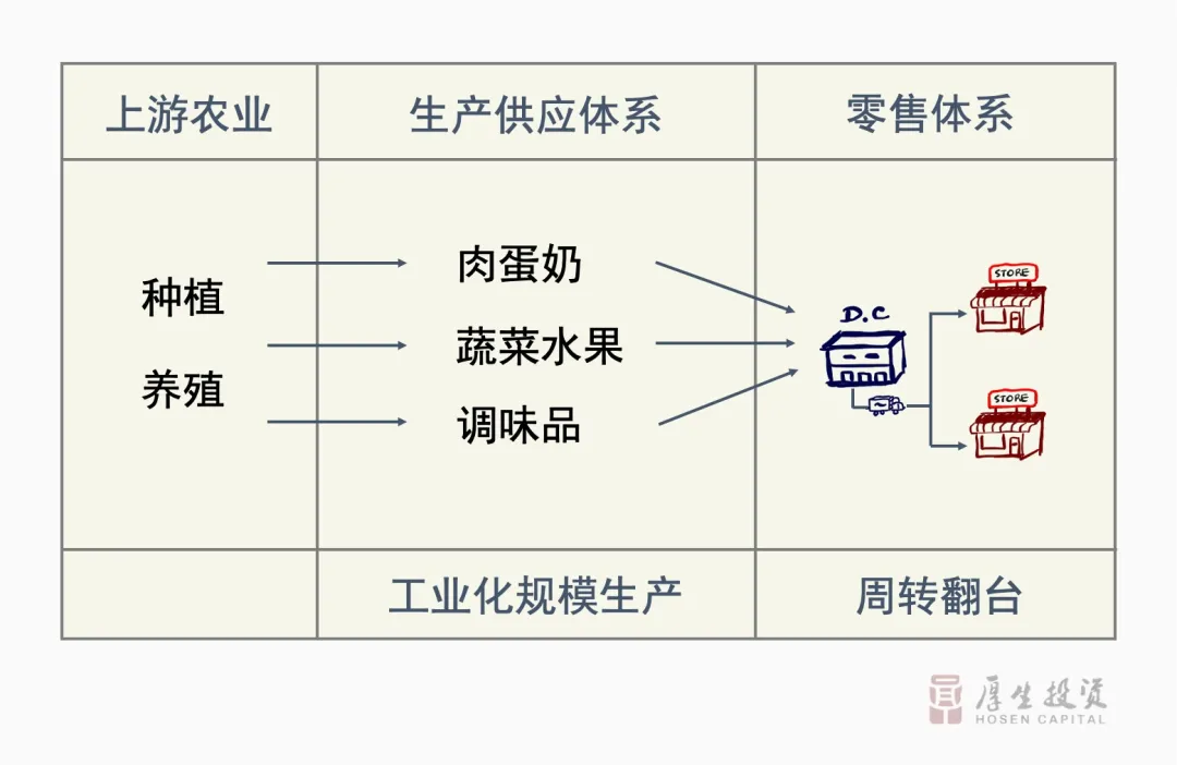 于餐饮而言,首先要认识到的就是:零售与生产供应是两种不同的商业体系,零售追求周转翻台,生产的效率来自规模工业化。