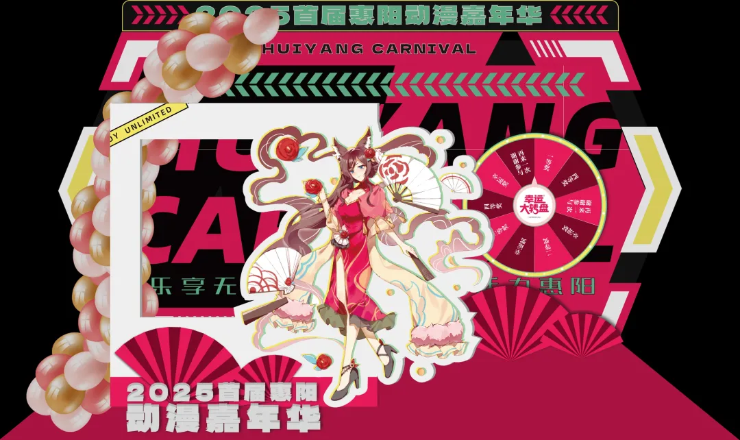 主题摄影打卡:古风布景、创意背景板、“2025年首届惠阳动漫嘉年华”二次元拍照点等多个精心设计的打卡点,助您拍出特色大片,留下最美假期记忆。