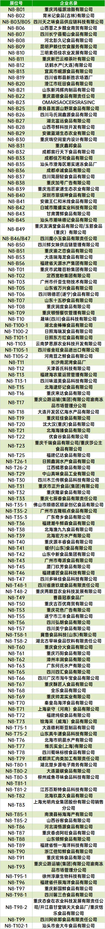 N8馆汇聚庆武隆苕粉、甘肃定西宽粉、重庆米雪、福建海农星、厦门玖芳、上海光明、江苏百斯特、福建仟辰海洋、重庆正升、四川晟味、优食谷、重庆干瑞等142家参展企业,带来新食材、新产品,为大家提供一站式火锅食材全品类选择。
