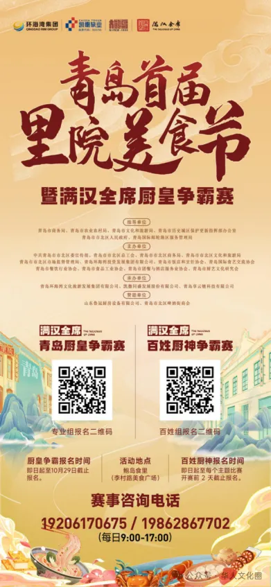 餐饮食材网获悉,2025青岛首届里院美食节暨满汉全席厨皇争霸赛将于10月10日至11月7日在大鲍岛文化休闲街区举办。据悉,本届美食节的重头戏为同期举办的“青岛厨皇争霸赛”和“百姓厨神争霸赛”。