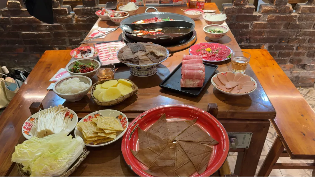 为破解同质化难题,该店以“甜品无限续”为突破口,推出十余种精致甜品不限量供应,既中和了火锅的辛辣,又让顾客收获“物超所值”的满足感。场景营造上,店内复古怀旧风格与露台帐篷区相互映衬,打造出兼具氛围感与私密性的社交空间,在社交媒体上引发自发传播。
