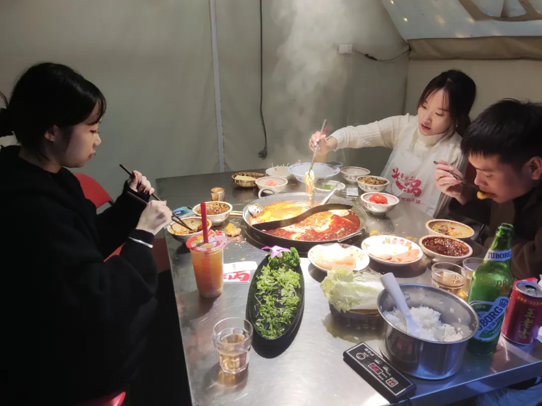 “现在餐饮竞争激烈,光靠味道不够,得让顾客有‘超出预期’的体验。免费甜品无限续是我们的诚意,帐篷露台是我们的巧思,新鲜食材和时令菜品是我们的底气。用真诚的服务、实在的分量、有新意的场景,让每一位顾客吃得开心、拍得尽兴,这就是我们能一步步圈粉的原因。”蒋春燕鲜切火锅店店长戴兴龙介绍道。