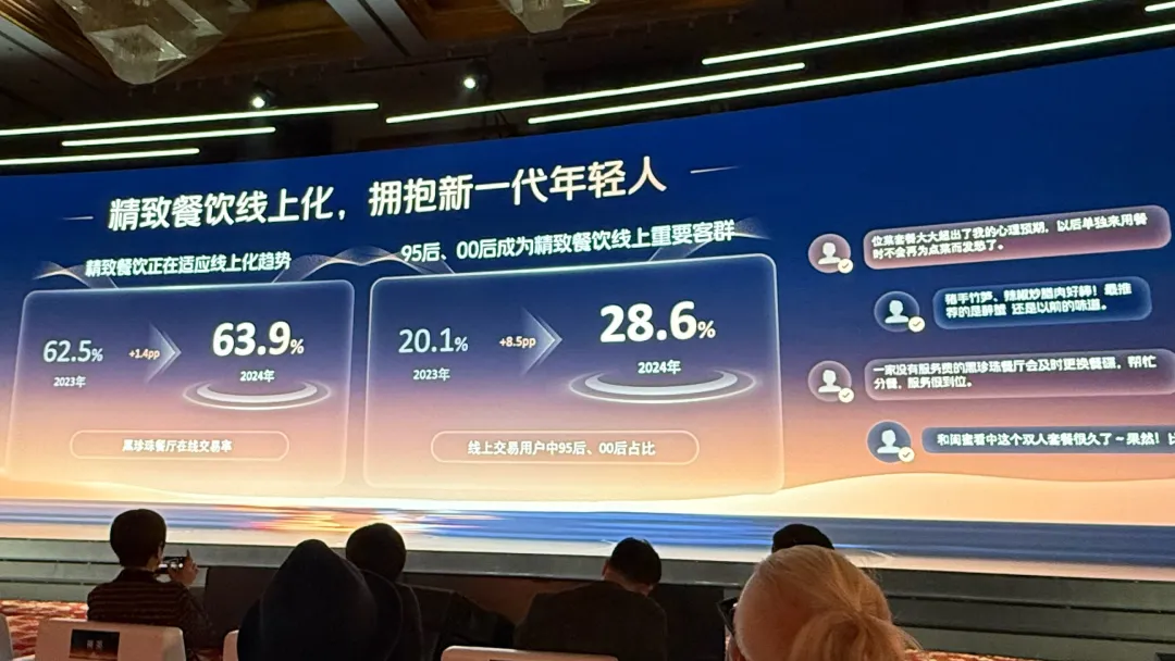 精致餐饮“线上化”变得愈加重要,如今越来越多年轻人开始习惯在线上完成精致餐饮消费决策。数据显示,2024年,黑珍珠榜单餐厅的在线交易率达到了64%,其中,95后、00后占比已达到28.6%,较上年同期增长8.5个百分点。