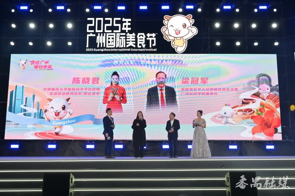 全运明星互动环节更是惊喜连连,华南师范大学体育科学学院教师、花样游泳世界冠军、奥运亚军陈晓君和美国美东华人社团联合总会主席、广州软件学院董事长梁冠军化身“美食品鉴官”,不仅分享了运动与饮食相辅相成的健康心得,还向现场幸运观众赠送签名版“全运美食礼盒”。
