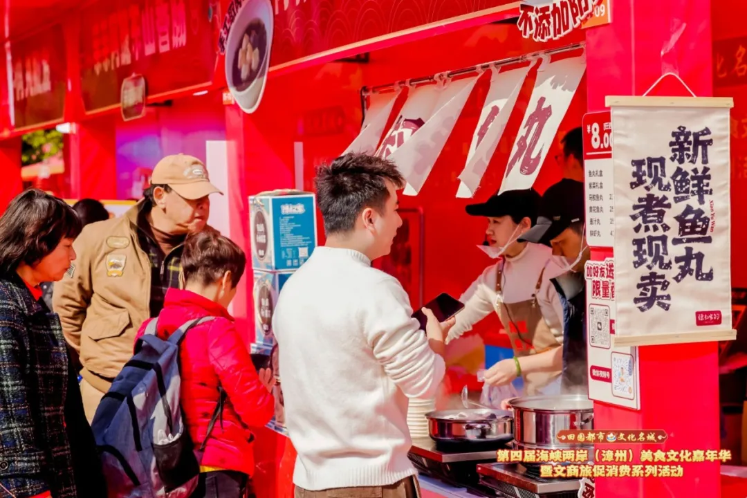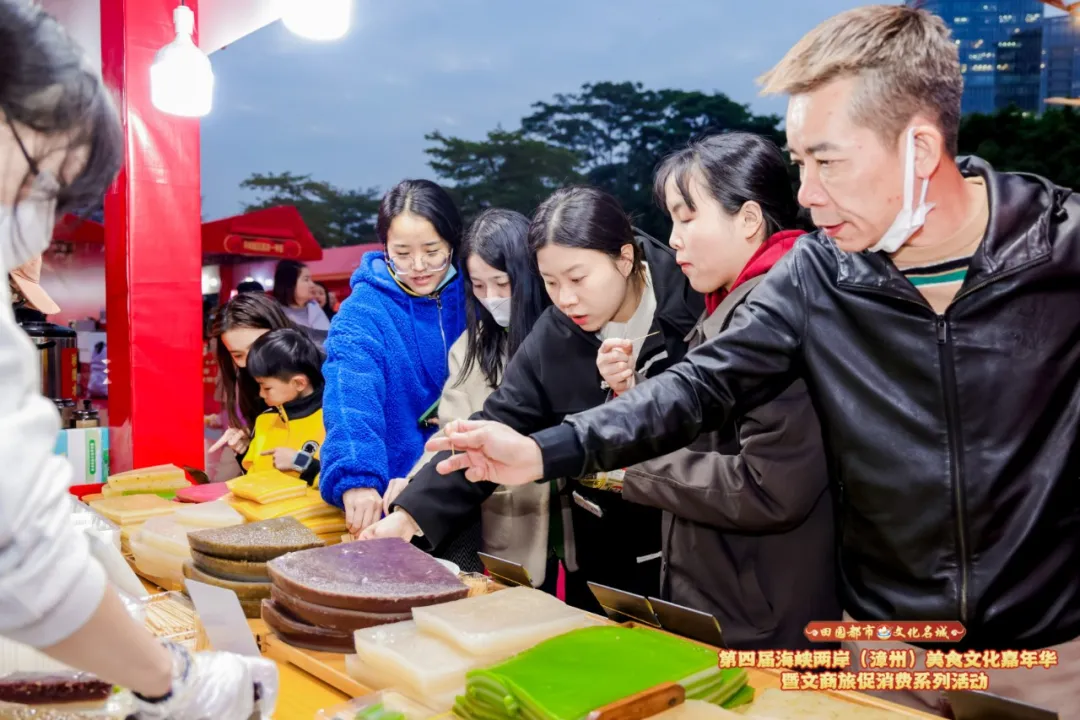 据悉,本次活动由福建省文化和旅游厅、福建省商务厅、漳州市人民政府指导,漳州市文化和旅游局、漳州市商务局、漳州市工业和信息化局、龙文区人民政府主办。此次活动为期三天,现场共设置550个展位,开设“一县一条美食街”“中华美食”“非遗瑰宝”“文化创意”“亲子乐园”“年货展销”六大展示展销区,汇聚两岸特色美食、非遗技艺、文创产品等多元内容,一站式呈现漳州特色美味。
