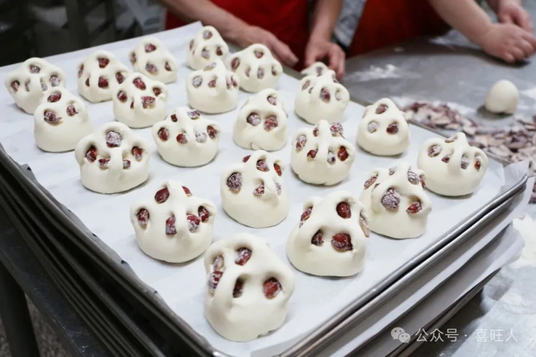 每日14:30,面案间开始准备工作,麦香与酵母清甜交织升腾。面案班的大姐们挽起袖口,将面团反复揉搓、塑形,再嵌入红枣、包入红糖,揉成各种花样,整整齐齐摆在蒸屉列队,等待进入蒸柜,以期在春节期间温暖每一位坚守岗位的职工的胃与心